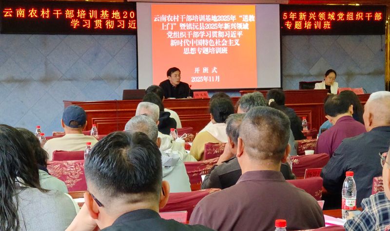 11月7日上午,云南农村干部培训基地在镇沅县举办2025年“送教上门”暨镇沅县2025年新兴领域党组织书记、党务干部和普通党员学习贯彻习近平新时代中国特色社会主义思想专题培训班。云南农村干部培训基地副主任、云南农业大学继续教育学院党支部书记普文龙出席开班式并讲话,镇沅县委常委、县委组织部部长、县委党校(行政学校)校长肖端菊主持并作开班动员讲话。镇沅县新兴领域党组织书记、党务干部、普通党员,乡(镇)组织干事、社会工作业务人员、平安法制办负责人,恩乐镇社区部分党员,恩乐镇、按板镇社区工作者等125人参加培训。