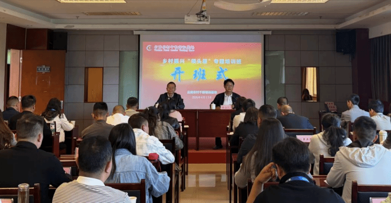 2026年4月13日上午,云南农村干部培训基地乡村振兴“领头雁”专题培训班正式开班。云南农业大学继续教育学院院长、云南农村干部培训基地副主任杨金江同志作开班动员讲话,云南农业大学继续教育学院(云南农村干部培训基地)党支部副书记戴波同志主持开班式。来自全省16个地州的村(社区)党组织书记共50人参加培训。