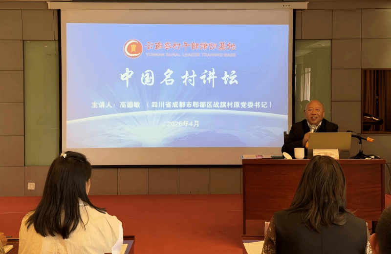 2026年4月14日上午,2020年全国劳动模范、成都市郫都区战旗村原党委书记高德敏受邀做客云南农村干部培训基地“中国名村讲坛”,为基地乡村振兴“领头雁”专题培训班全体学员带来了《党建引领强根基,实干兴村促共富——战旗村乡村振兴的实践路径》专题的授课,分享战旗村乡村振兴的宝贵经验。