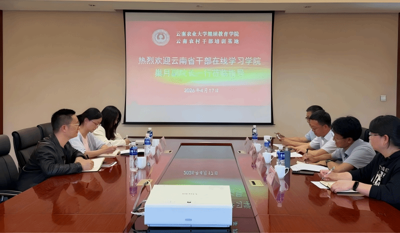 2026年4月17日下午,云南省干部在线学习学院副院长巢月一行3人到云南农村干部培训基地座谈交流。云南农业大学继续教育学院、云南农村干部培训基地副主任杨金江同志、云南农业大学继续教育学院(云南农村干部培训基地)党支部副书记戴波同志及基地相关老师参加座谈。